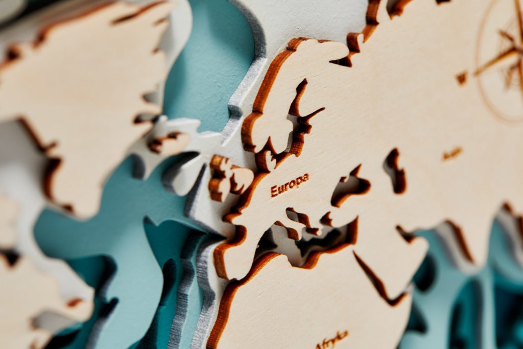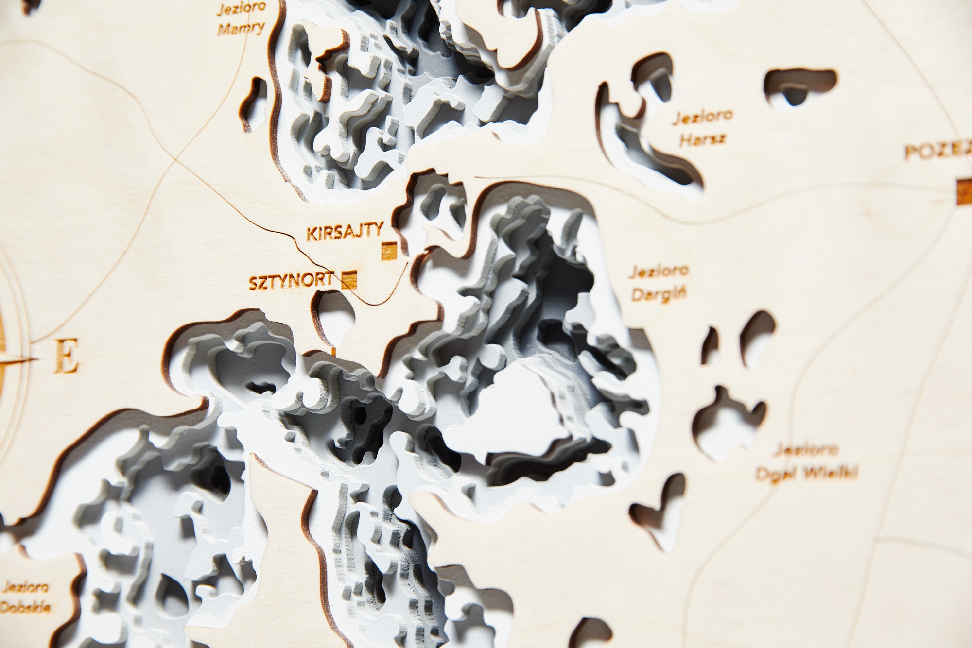Laser w pierwszej kolejności graweruje nazwy miast, podział administracyjny, rzeki, drogi i wszystko to co kluczowe by mapa byłą MAPĄ. Potem wycina poszczególne elementy nie pozostawiając ostrych ani poszarpanych krawędzi.