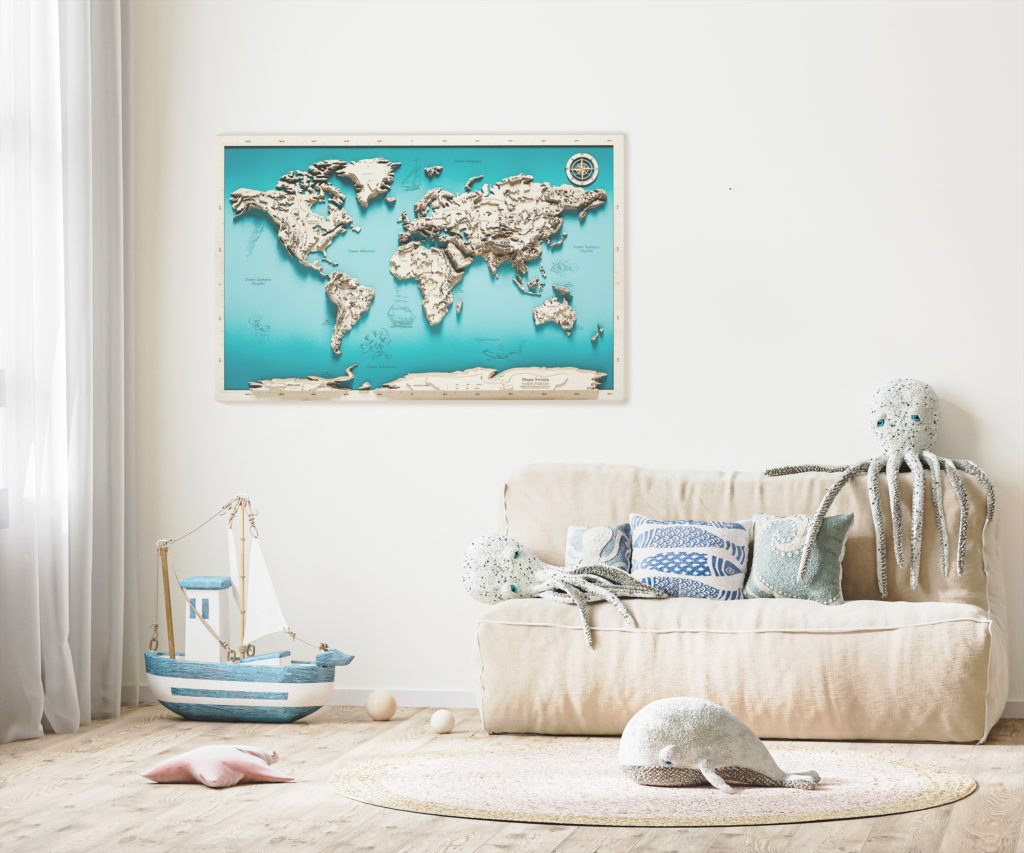 Pokój marynarski to świetny pomysł na aranżację dla dziecka, które jest ciekawe świata i marzy o emocjonujących przygodach. Ten uroczy styl jest uniwersalny i sprawdzi się zarówno w przypadku chłopców, jak i dziewczynek w każdym wieku. Pozwól swojej pociesze rozwijać wyobraźnię i podróżować po wzburzonych wodach mórz i oceanów bez wychodzenia z domu. Wykorzystaj do tego oryginalne mapy drewniane Avocado, które zachęcą Twoje dziecko do poszerzania swojej wiedzy na temat otaczającej go rzeczywistości.