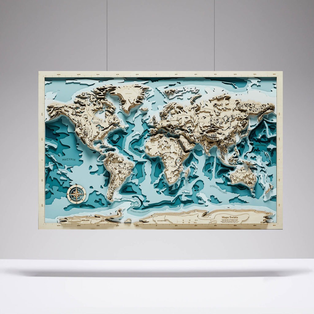 Omawiając akcesoria morskie do łazienki, nie sposób pominąć mapy, która jest wartościowym przedmiotem nie tylko nad morzem, ale również jako ozdoba w domu. Utrzymane w marynistycznej stylistyce pomieszczenie należy wykończyć dekoracją, która stanie się godnym zwieńczeniem wnętrzarskiego dzieła. W tej roli znakomicie sprawdzi się mapa drewniana z kolekcji Avocado Pracowni Twórczej. Znajdziesz u nas wiele ręcznie robionych, unikalnych dzieł, w tym wyjątkowych map morskich. Oferujemy m.in.:
