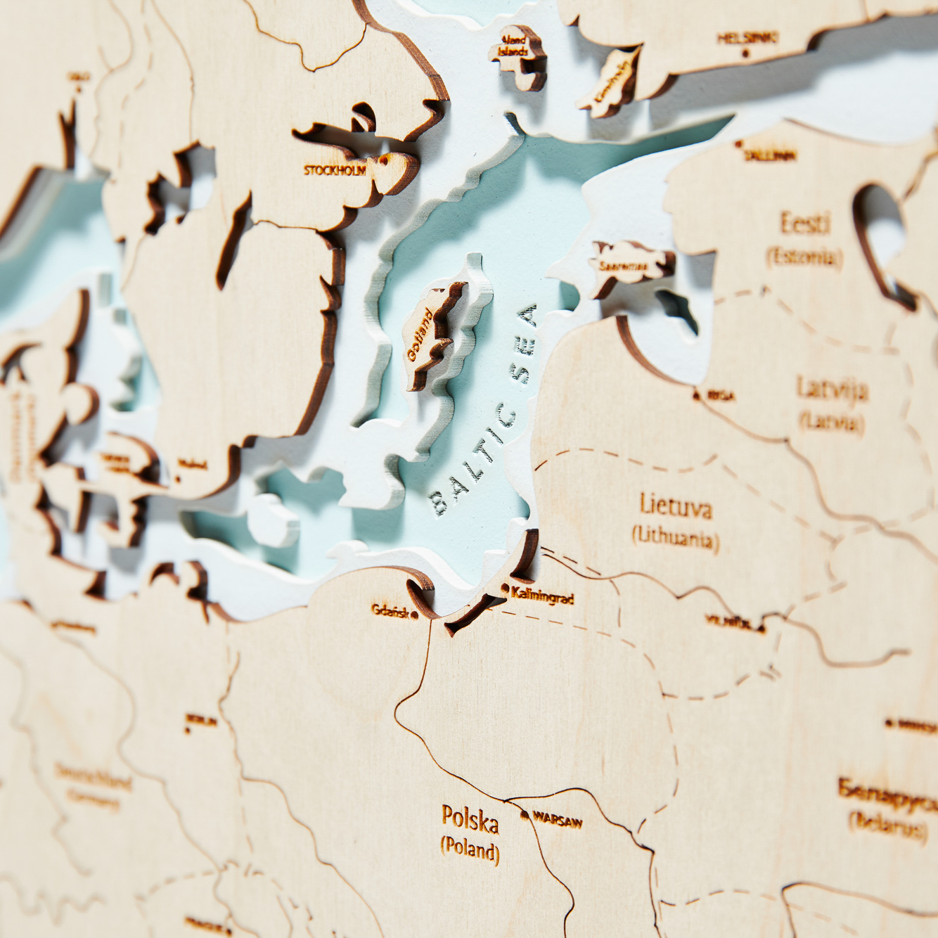 Nasza Drewniana Mapa Europy na ścianę to rękodzieło, które zachwyca poziomem szczegółowości i dopracowania. Trudno oderwać wzrok zarówno od fantastycznie odwzorowanych krajów, jak i różnorodności kolorów uwypuklających tajemniczy charakter wodnej toni. Z każdą kolejną chwilą wpatrywania się w tę mapę wychwytujesz kolejny wymiar niesamowitości Starego Kontynentu i nabierasz chęci do jego dalszej eksploracji. Powieś tę niezwykłą mapę na swojej ścianie w sypialni, salonie lub biurze, a w dowolnej chwili będziesz mieć możliwość przenieść się myślami do wybranego zakątka Europy i planować przyszły urlop w tym miejscu.