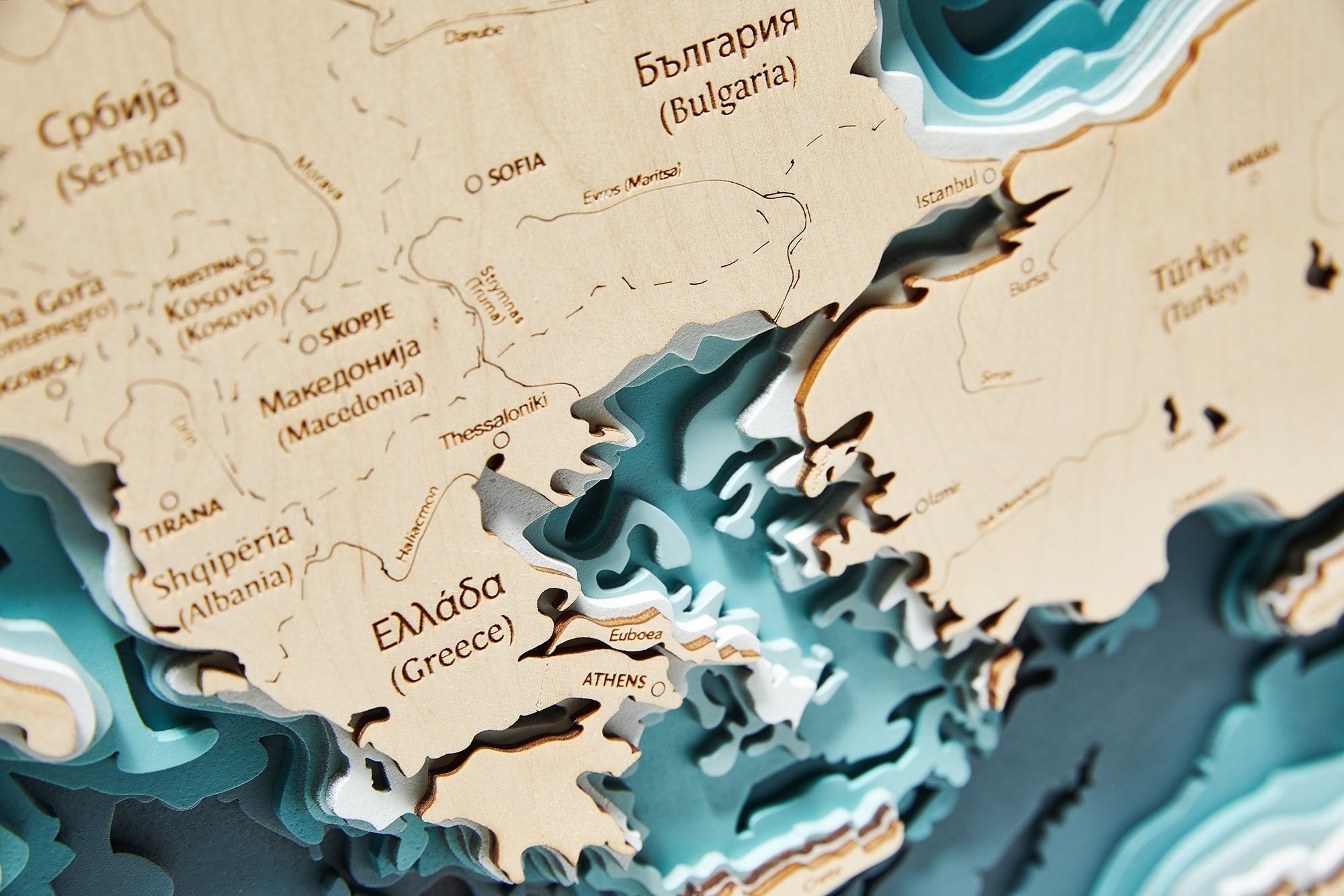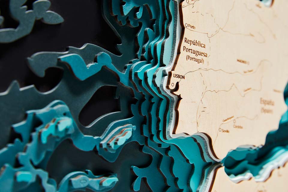 Mapa powstała w Gdańsku z polskiej sklejki drewnianej – od projektu, przez polerowanie, malowanie i klejenie jest wykonana ręcznie.