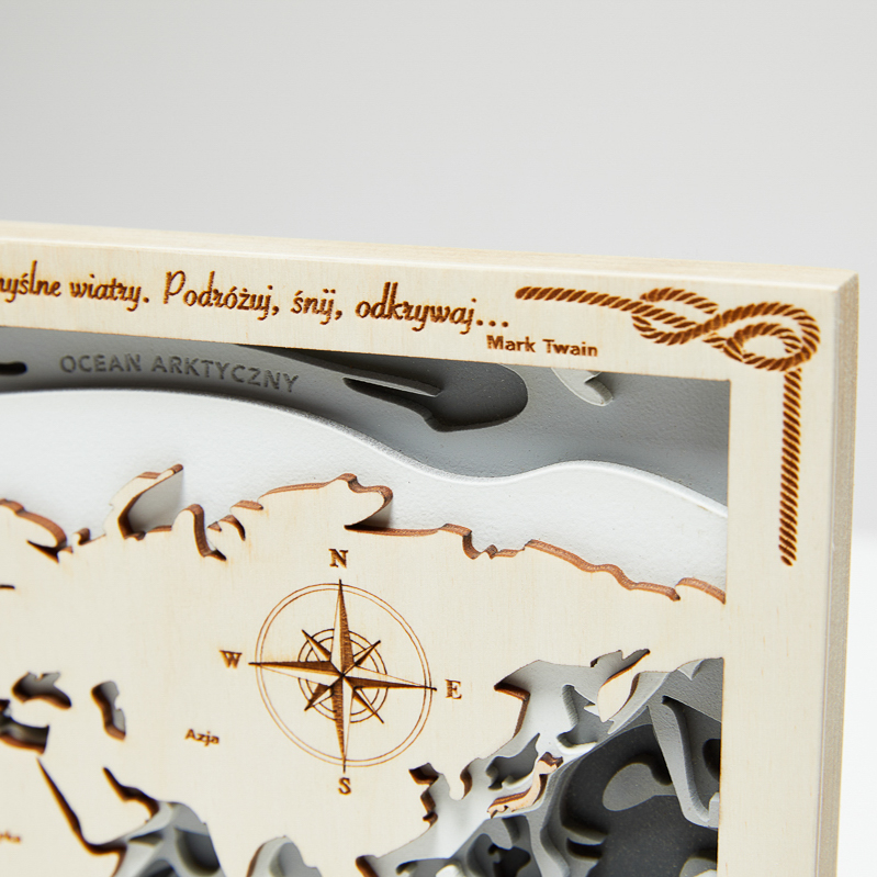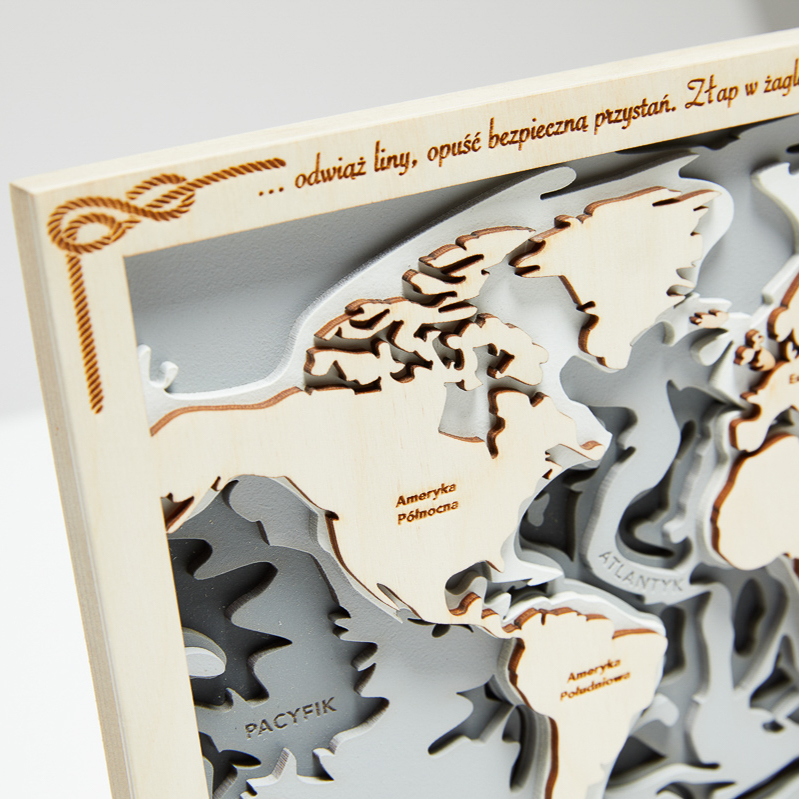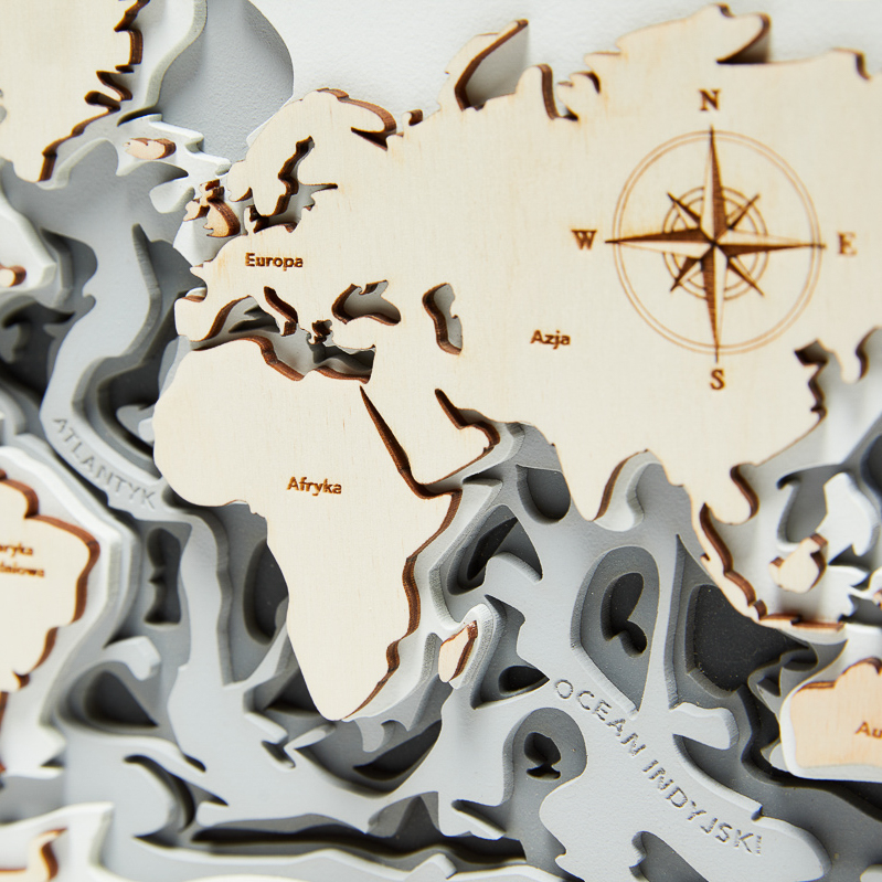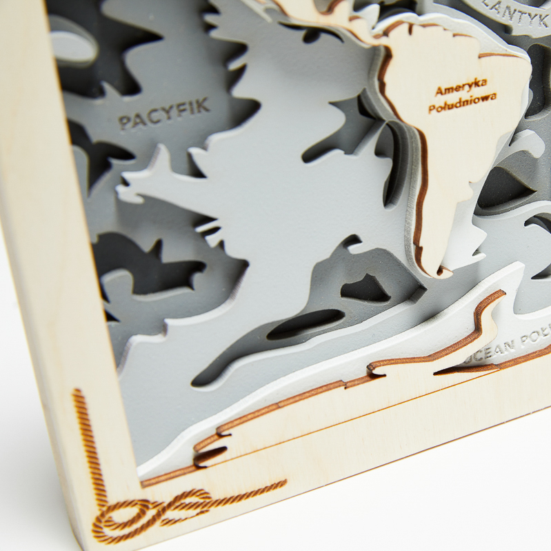 Mini Trójwymiarowa Świata to drobna, lecz wartościowa ozdoba do powieszenia na ścianie lub postawienia na biurku. Nowa – szara kolorystyka – sprawia że jest neutralna i pasuje do każdego wnętrza i zaspokoi nawet najbardziej wymagające gusta!  Marzenia na wyciągnięcie ręki! Idealny prezent w wersji kieszonkowej ;). Mapa ręcznie polerowana, malowana i klejona w warsztacie w Gdańsku. Posiada otwór do zawieszenia.