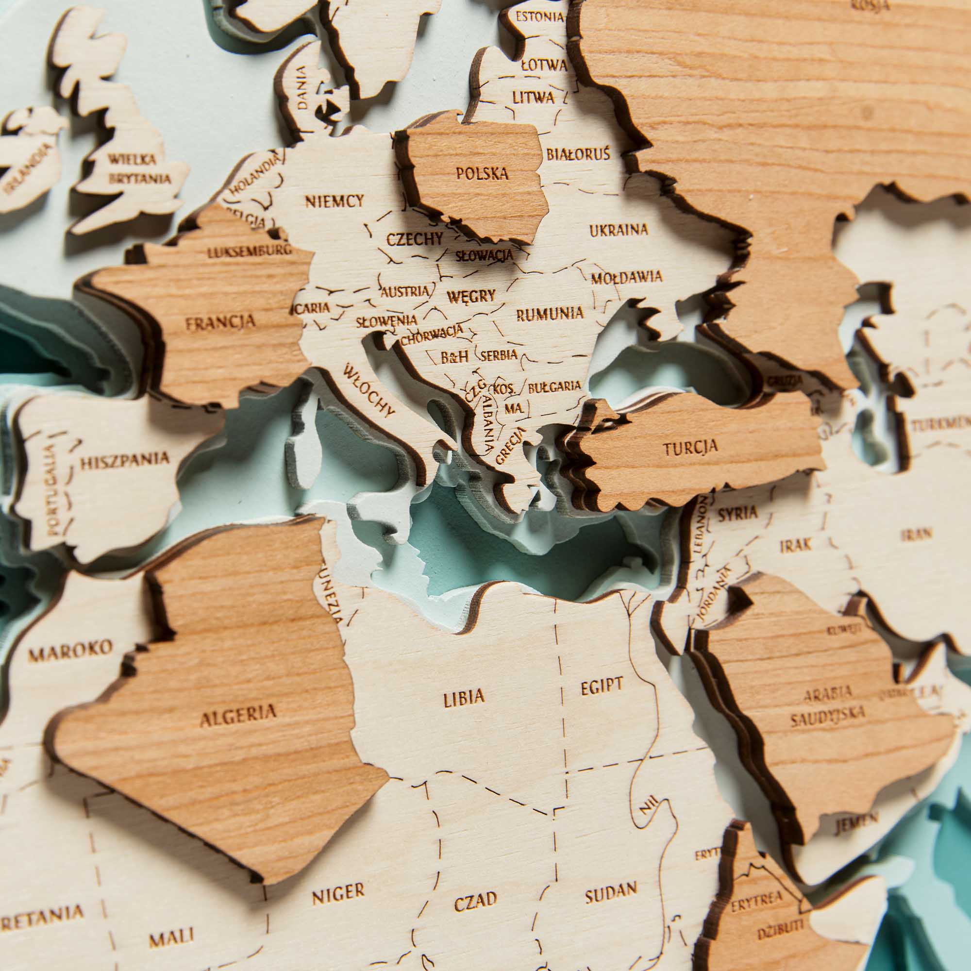 Zestaw drewnianych (wiśnia) państw, który sprawi, że Twoja Mapa nabierze indywidualnego wyglądu.